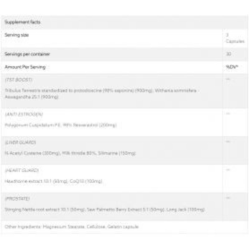 | Efectos secundarios | Malestar estomacal, alteraciones del sueño, posibles problemas de próstata en dosis altas. |
